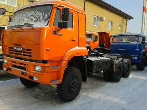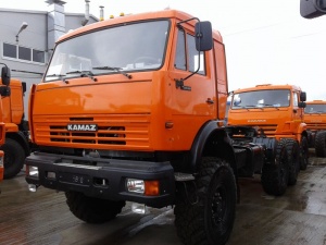 Мощный двигатель седельного тягача, надежная коробка переключения передач обеспечивают развитие скорости тягача под нагрузкой и беспроблемный подъем даже в груженом состоянии. Автомобиль седельный тягач КамАЗ оснащается большим топливным баком, что дает возможность преодолевать большие расстояния под нагрузкой без дозаправки. Колесная формула седельного тягача КамАЗ обеспечивает сцепление второй пары ведущих колес с дорожным покрытием. Машина седельный тягач КамАЗ преодолевает бездорожье, может ехать по заснеженной дороге или обледенелой поверхности.