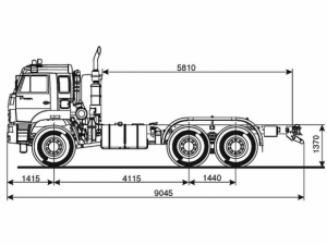 Шасси 6*4, длина рамы 5 970 мм, межосевое растояние мм, грузоподъемность 12 тонн