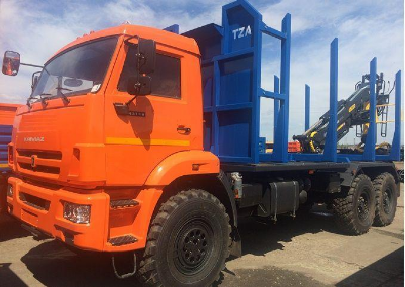 Автомобиль-сортиментовоз с ГМУ состоит из следующих основных сборочных единиц: шасси автомобиля KAMA3-43118 и навесного технологического оборудования, включающего в себя надрамник, ограждение кабины, коники, кожухи грязезащитные, лестницу, электрооборудование, гидроманипулятор и гидрооборудование.
